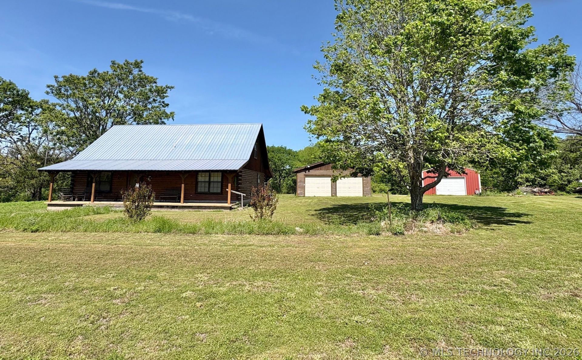 Charming log cabin on 14.83 acres in Peggs, OK offering the perfect blend of rustic character, usable land, and convenient location. This custom Satterwhite Log Home features 3 bedrooms, 2 bathrooms, approximately 1,700 sq ft (Court House), soaring vaulted ceilings, warm wood finishes, and inviting country charm throughout. Covered front and back porches provide the perfect place to relax and enjoy the peaceful setting. The acreage offers a beautiful mix of open space and mature trees with a scenic creek running through the property, creating a serene natural backdrop and opportunities for recreation, exploring, or simply enjoying the outdoors. Valuable improvements include a detached 2-car garage, 20x30 shop, and impressive 40x50 barn ideal for livestock, equipment, hobbies, storage, or workshop space. Plenty of room for gardening, animals, outdoor toys, or expanding your country lifestyle dreams. Conveniently located just 20 minutes from the Illinois River and recreation areas. Conveniently located near US HWY 412 you could have easy access to Tahlequah, Muskogee, and Tulsa. This property offers privacy and country living without sacrificing accessibility. Ideal as a full-time residence, hobby farm, weekend retreat, or investment opportunity. Agent related to Seller.