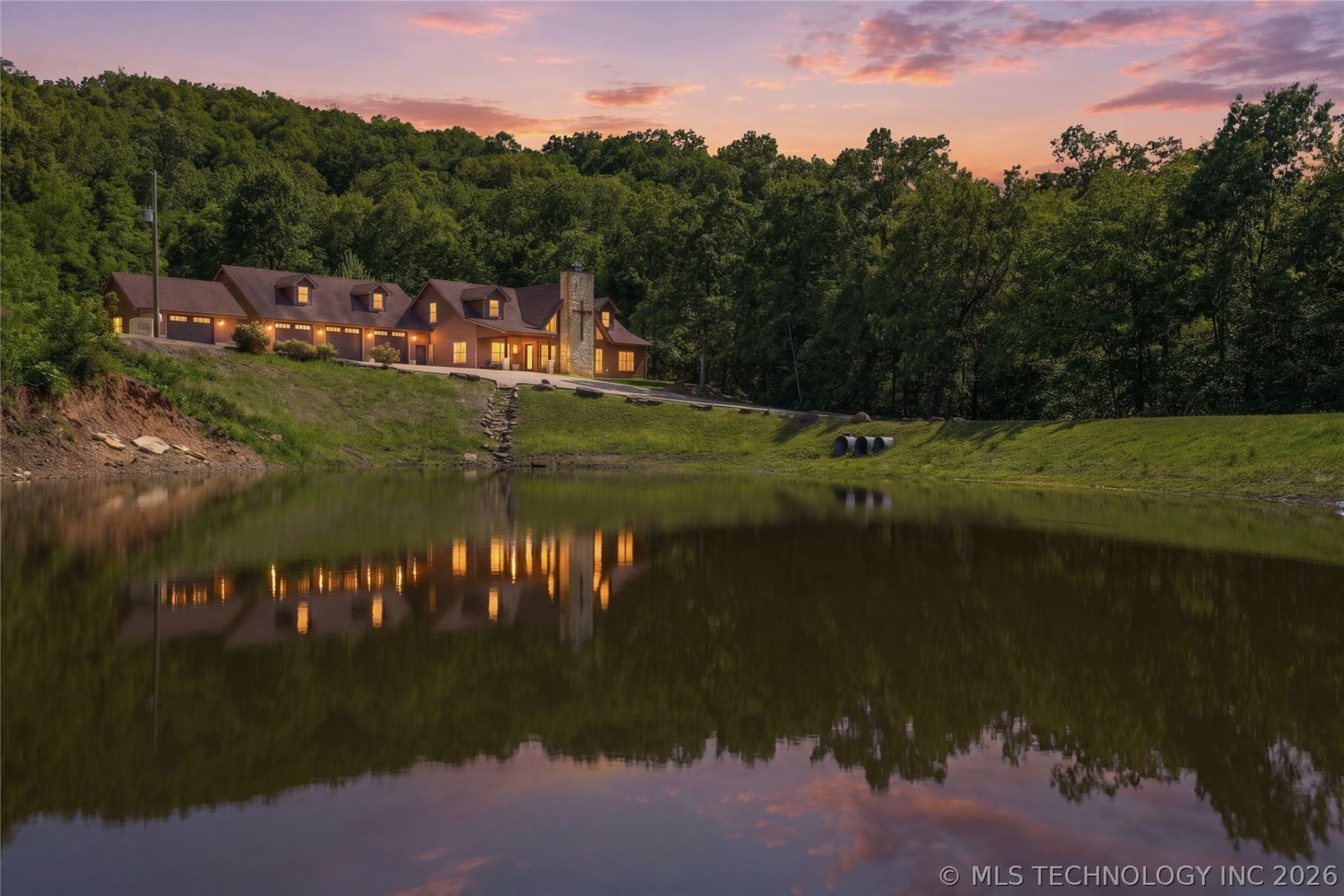 Lake Tenkiller living gets a serious upgrade with this stunning estate on approximately 53 scenic acres (per CH). With 4,600 square feet (Per CH), five bedrooms, and four-and-a-half baths, this home blends luxury, comfort, and room to breathe. Every bedroom offers a full bath and generous walk-in closet, while the primary suite feels like its own private spa with double closets, double vanities, a separate shower, a soaking tub, and even a tucked-away toilet area with its own television because, well, why not? Inside, cathedral ceilings, recessed lighting, Brazilian granite, marble window sills, and a massive Hill Country stone fireplace create a warm, impressive feel without trying too hard. Hunter ceiling fans, energy-efficient windows, three zoned air conditioning units, and an automatic35 kilowatt Generac generator keep daily living easy. The oversized game room above the garage adds even more flexibility with a bathroom and snack center, making movie nights and game days a breeze. Outside, the covered outdoor kitchen is ready for year-round entertaining with granite countertops, ceiling fans, and a second fireplace. Beyond the house, you will find a stocked fishing pond, trails for hiking and riding all-terrain vehicles, a three-car garage, a fully insulated finished shop, and gorgeous potential building sites with lake views. Just minutes from the lake and close to Snake Creek Marina, this property delivers seclusion without feeling remote. Come experience this one in person and schedule your private tour today. This property now offers 3 entrances, two off the main highway for access into the vacant land and one off of 953 Road!
